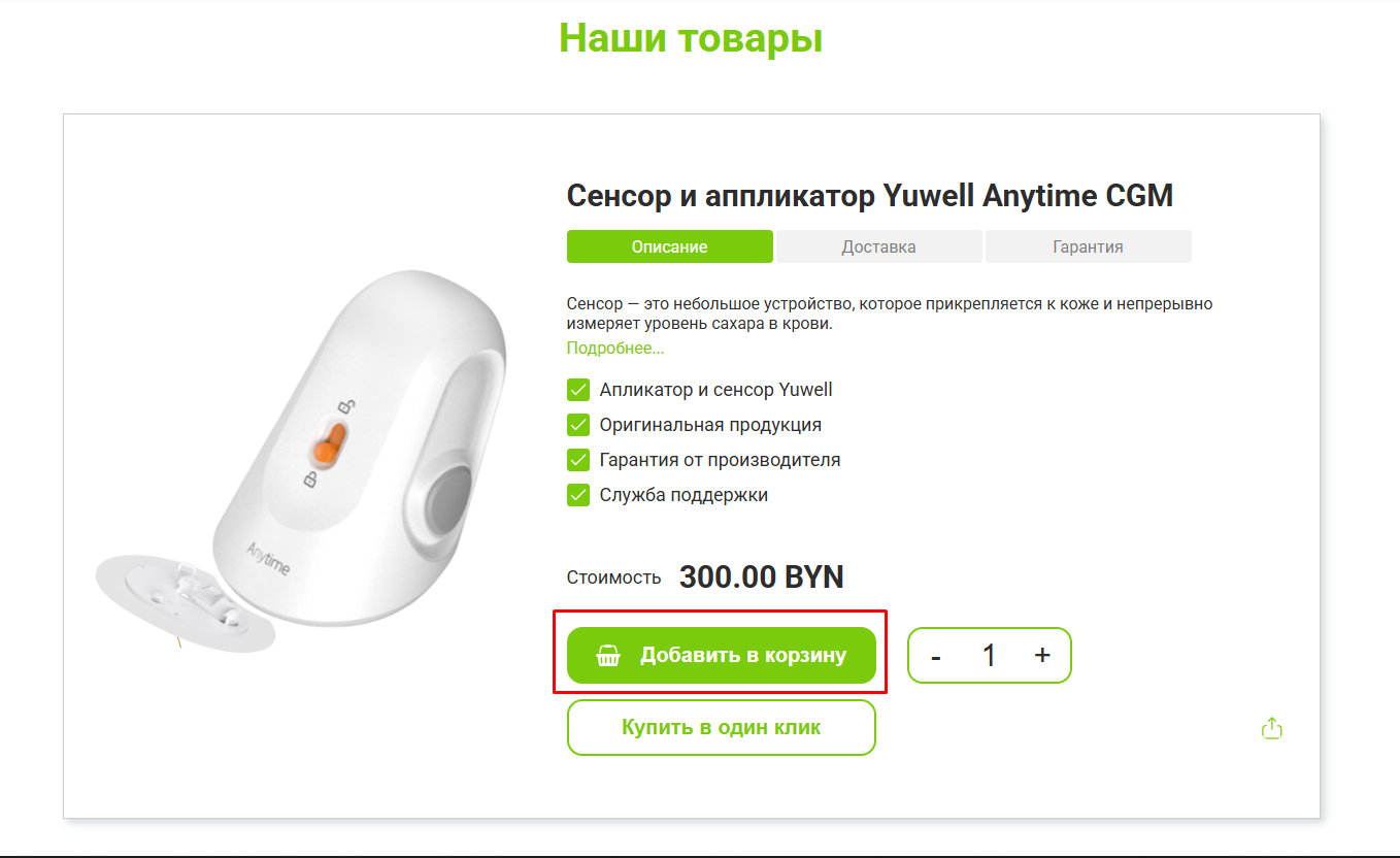 Выбираем товар и нажимаем кнопку добавить в корзину
